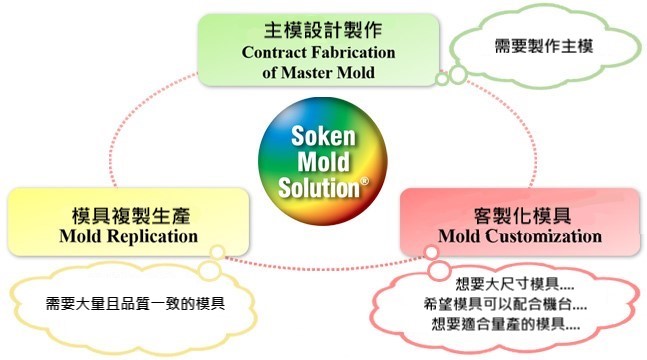 以上關於模具的課題,本公司提供日本Soken的模具製作服務, 為您解決奈米壓印技術的難題。