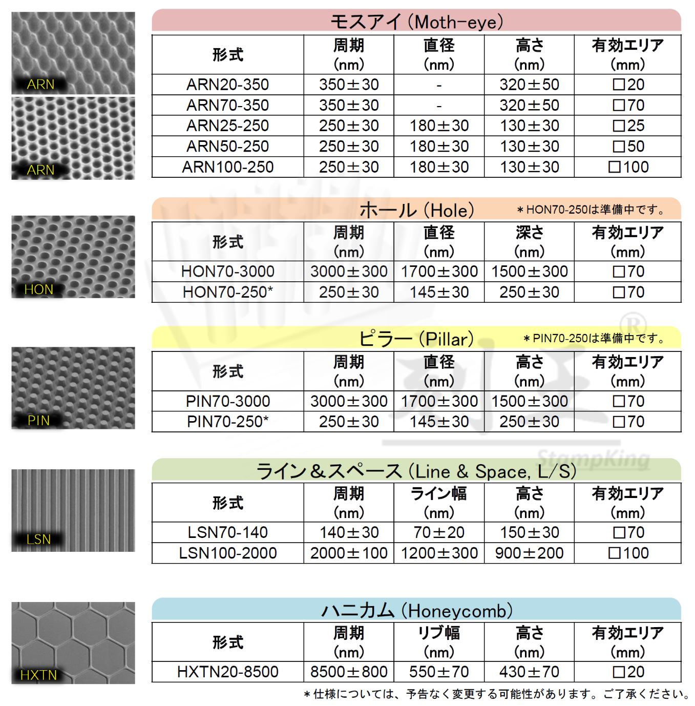 另一方面,鎳製(Nickel)模具『刻王®』質硬且耐熱性高,適用於熱固化奈米壓印製品。 依據客戶量產計畫推薦適當之模具。