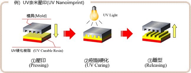 奈米壓印(NIL)技術以其能透過較為簡便的操作製作出奈米級形狀製品而受到矚目,然而另一方面,製作如此高精度製品並保持良好的再現性,對於轉寫條件最優化、轉寫樹脂塗佈精度(模厚、位置等)、設備、製程、材料等方方面面,都必須相當細膩且謹慎。